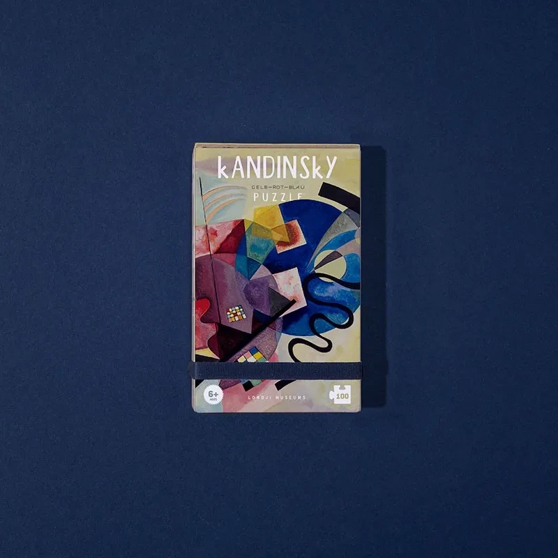 Puzzle składające się ze 100 elementów, inspirowane obrazem Kandinsky Gelb-Rot-Blau. Prezentowane w kompaktowym formacie, idealnym do zabrania wszędzie.